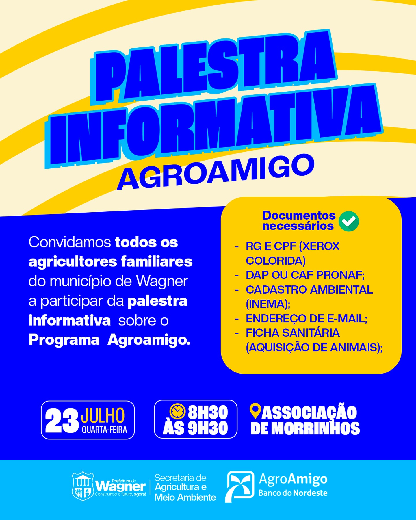No dia 23 de julho, tem palestra informativa sobre o Programa Agroamigo!