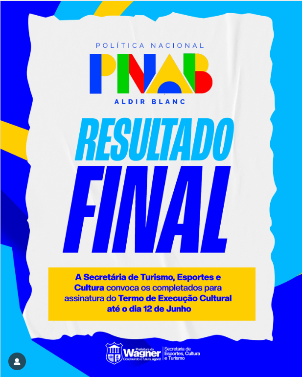 A Secretaria de Turismo, Esportes e Cultura de Wagner informa que os resultados finais da Lei Aldir Blanc já estão disponíveis.